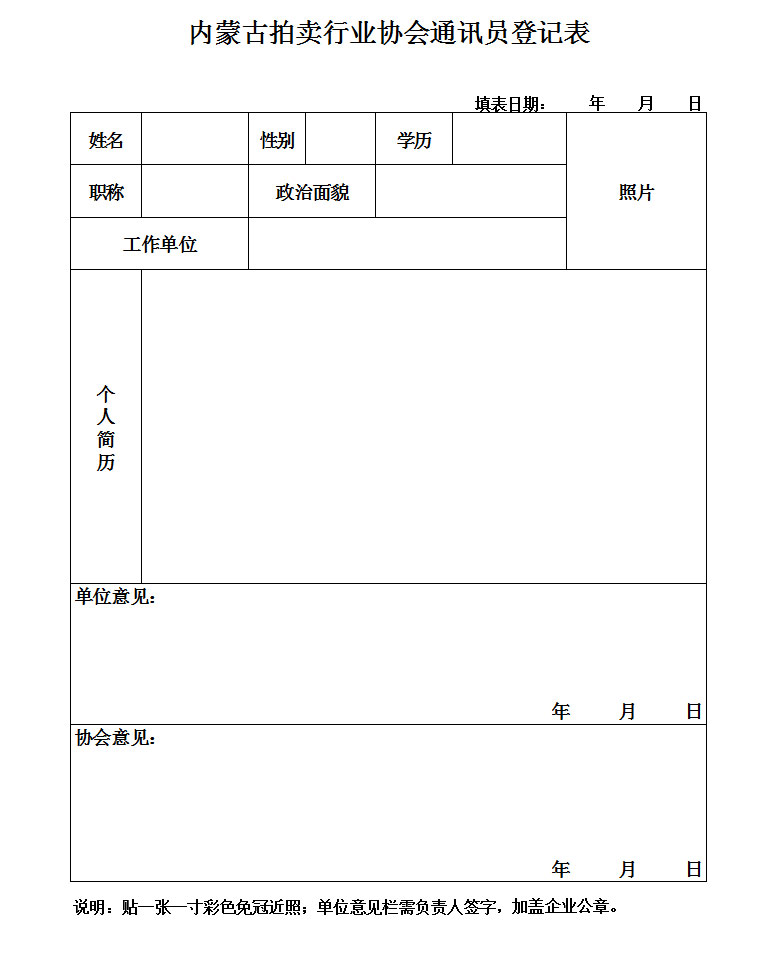 拍賣師繼續(xù)教育培訓學員備案表